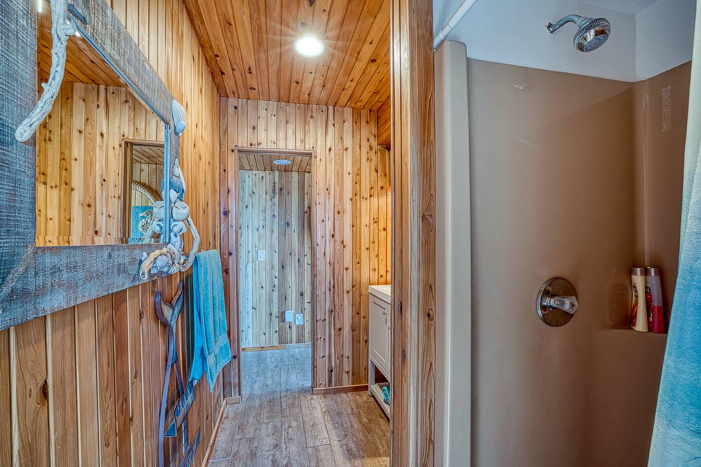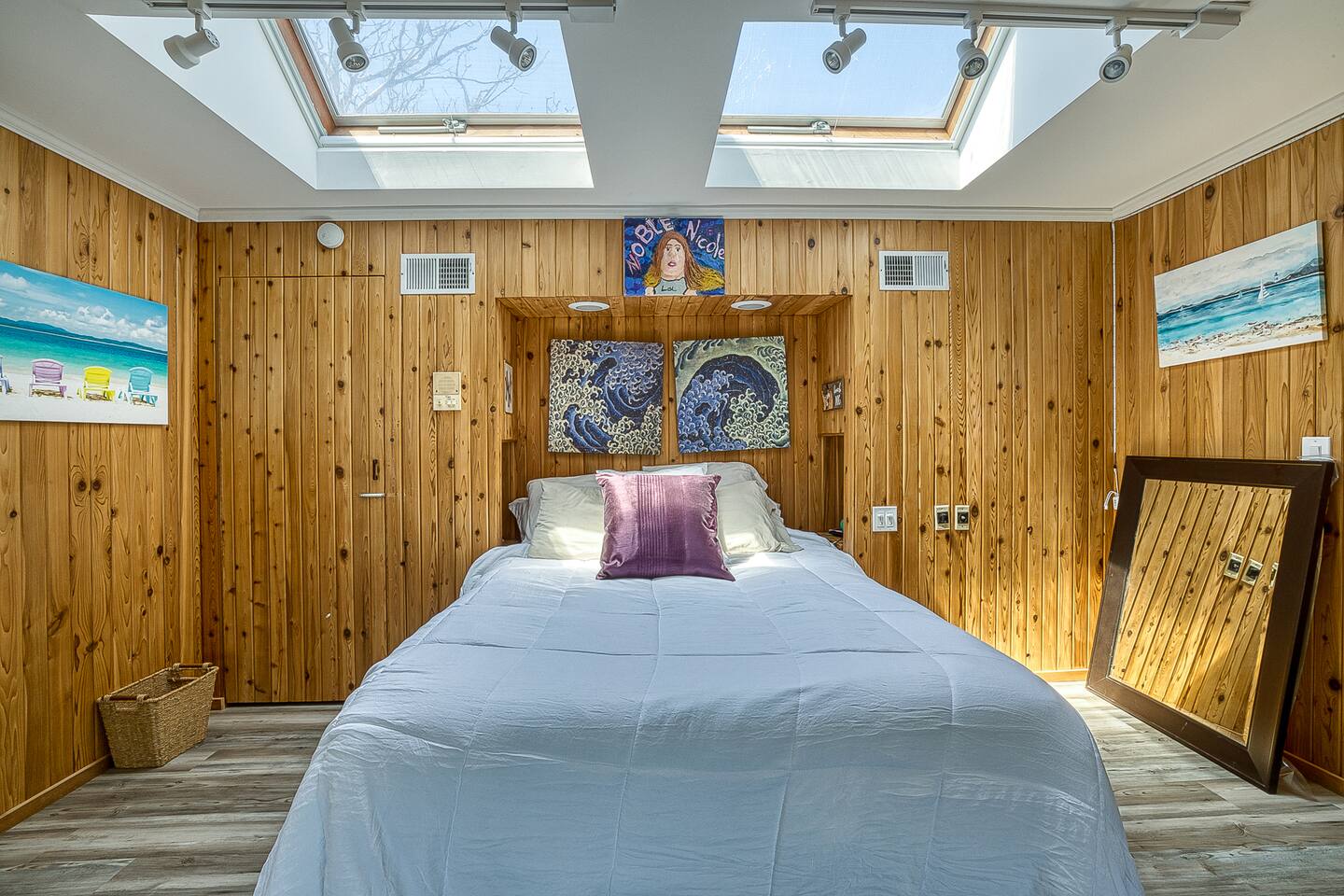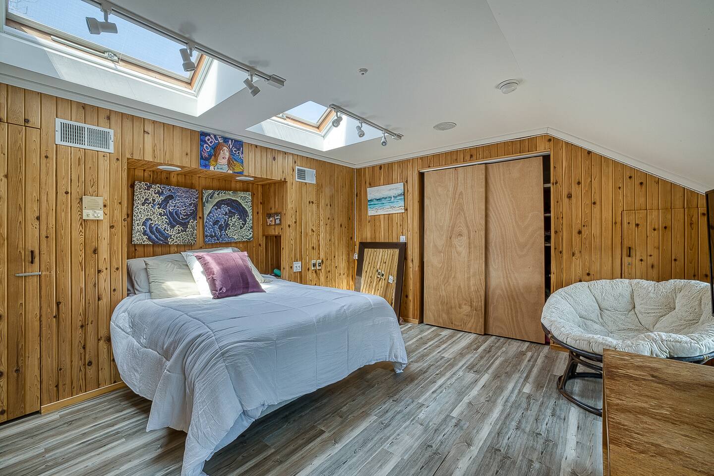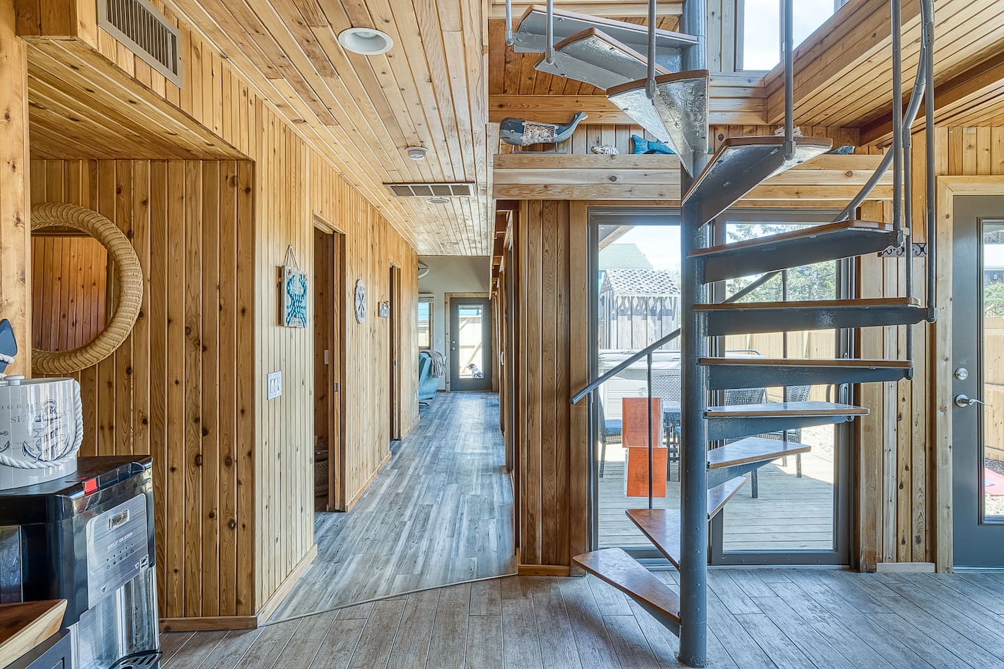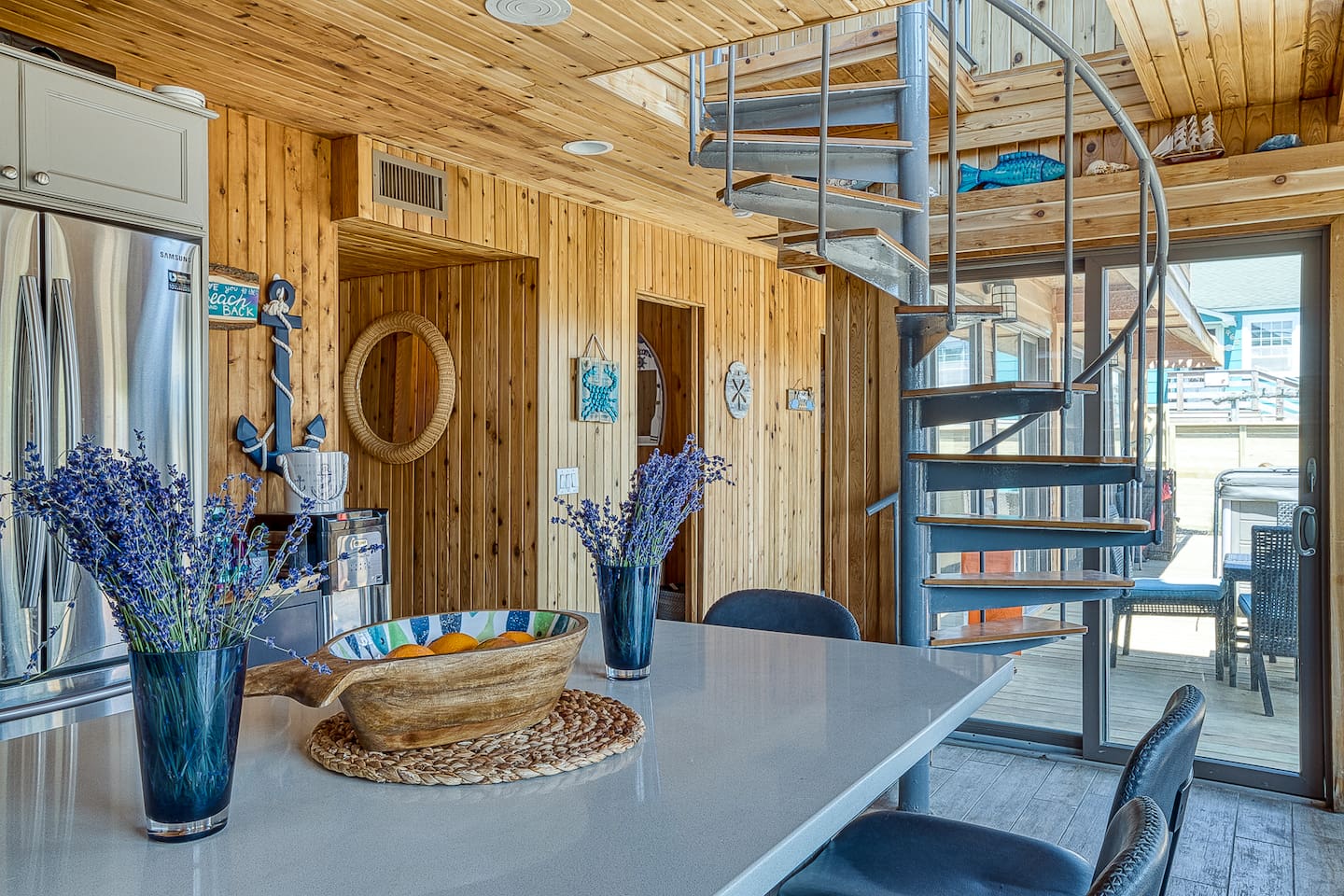 "Located less than 5 minutes to beach and downtown Ocean Beach, this house including 5 Bedrooms and 3 Bathrooms has a true resort hotel feeling, featuring a Jacuzzi, chaise lounges, dining for 8 and grill, and shower and commode on the outside. Interior features gorgeous cedar plank walls, updated kitchen and, central AC and heating. There is WiFi, a Spacious master suite upstairs has a king bed, en suite bathroom and a rooftop area with a TV."